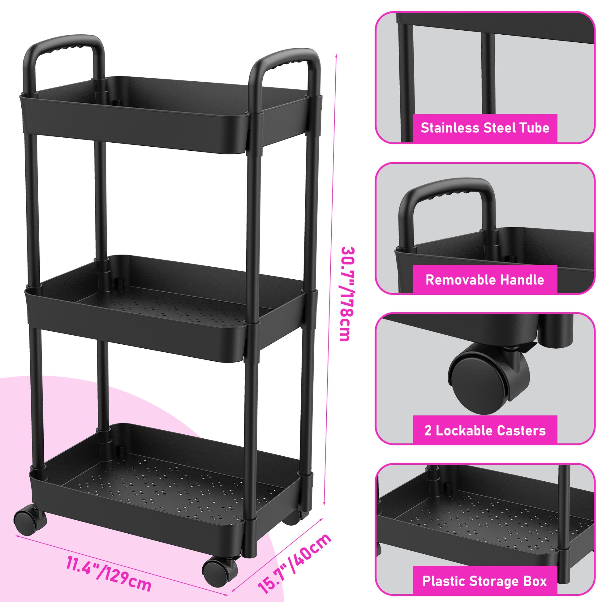 - 【Multifunctional Storage】This handle utility cart can be placed in the kitchen, living room, toilet, study and other places. You can use it to place daily items, spices, toiletries, books and other things. Improve the cleanliness of your home and don't worry about missing things.