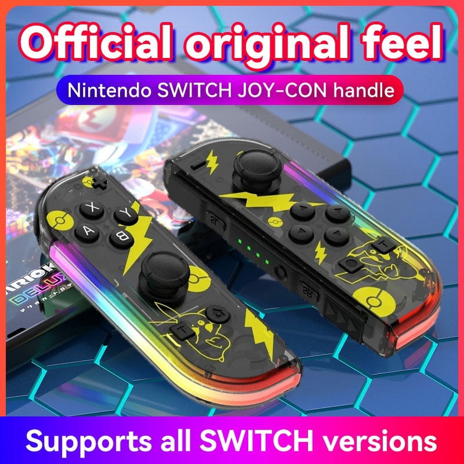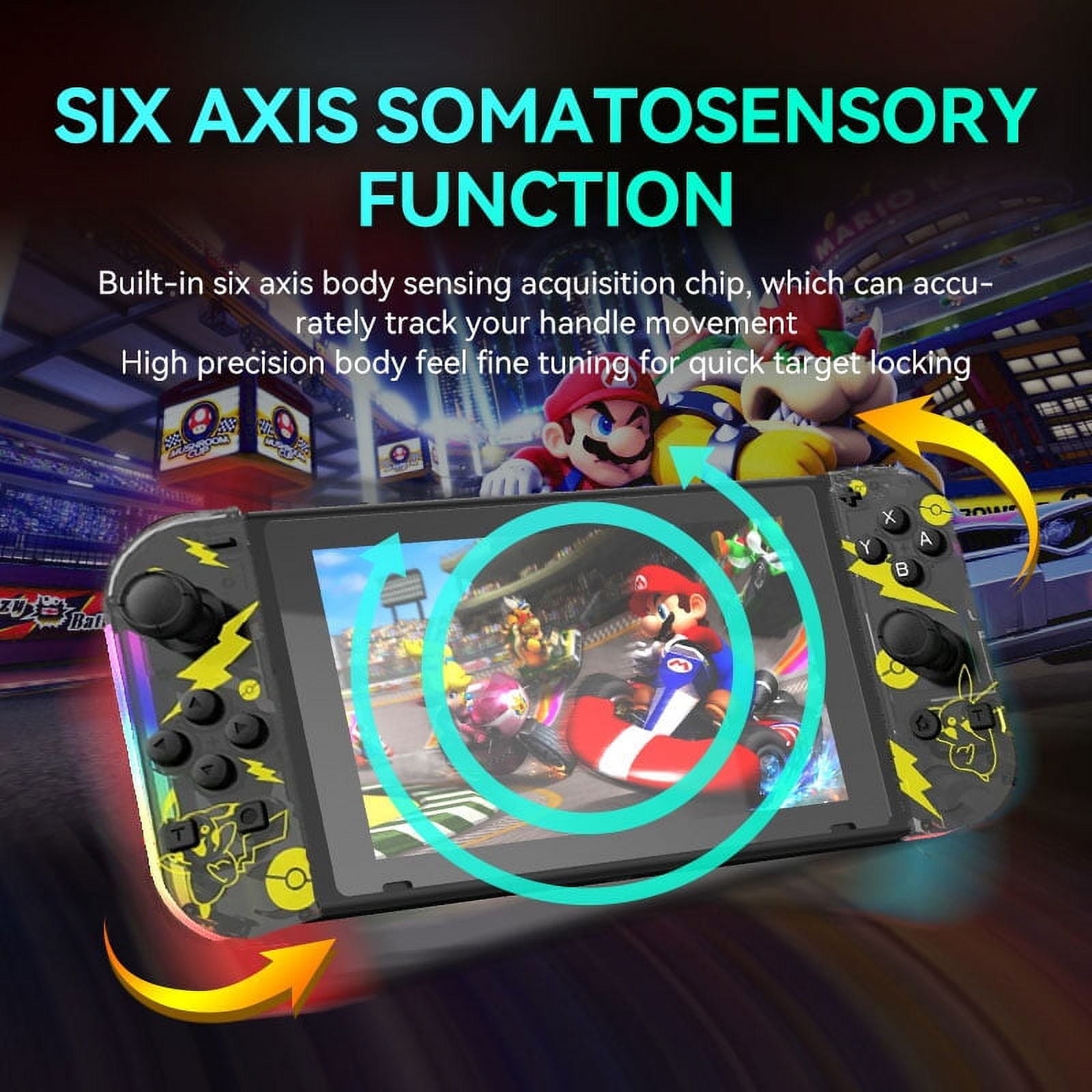 - 【 Motion control and Wake-up Function 】:360°joysticks and 6-Axis gyroscope in each controller for high precision aiming and shooting;Dual rumble supported;Wake up the switch by long pressing Home button when it is in the sleep mode.