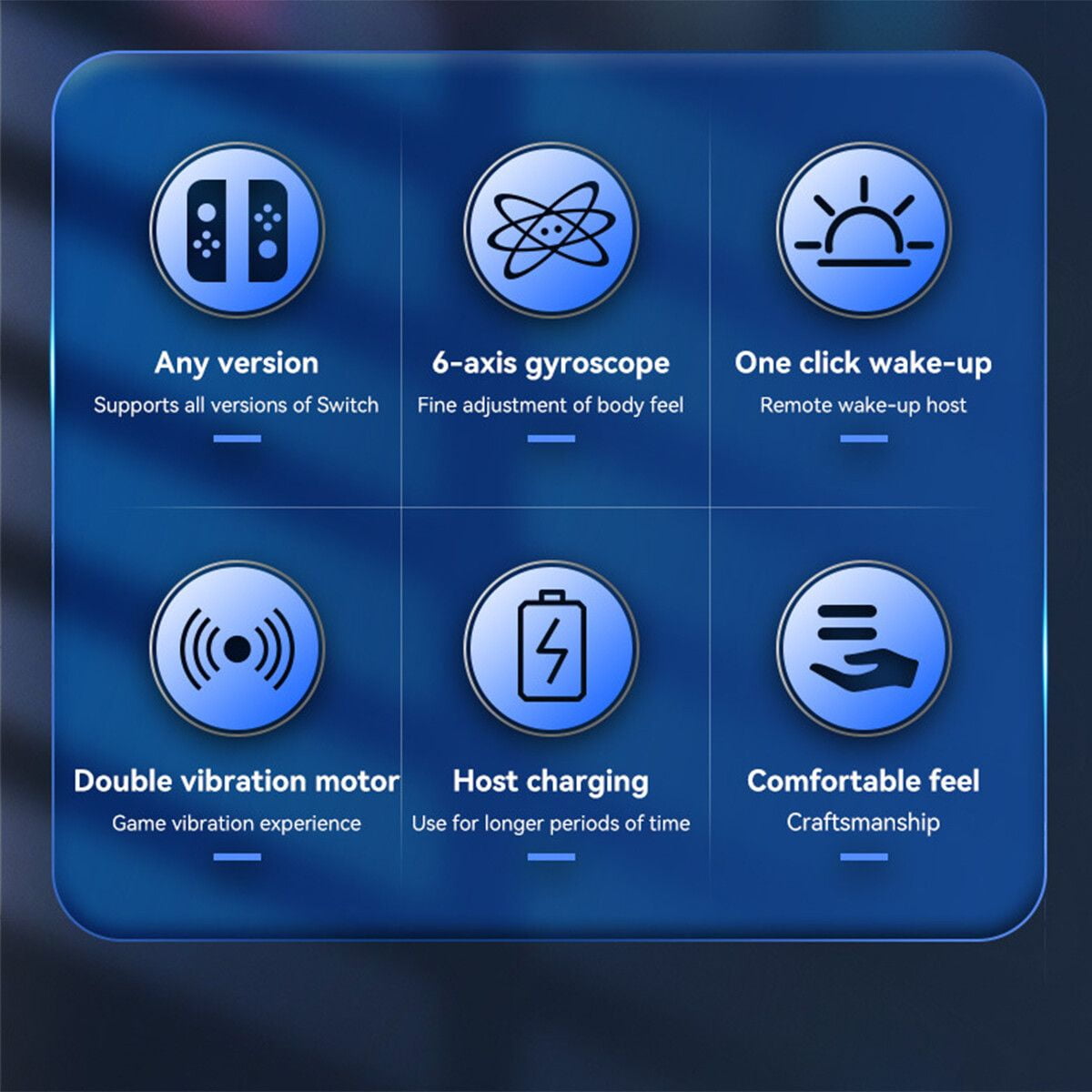 - 【 Motion control and Wake-up Function 】:360°joysticks and 6-Axis gyroscope in each controller for high precision aiming and shooting;Dual rumble supported;Wake up the switch by long pressing Home button when it is in the sleep mode.