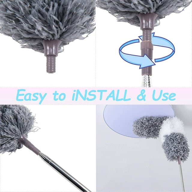 【Make Housework More Easier】Featuring innovative split fiber technology, it becomes electrostatically charged as you use it, attracting dust, pollen and hairs with ease. Use it wet or dry to get your house spick-and-span. Microfiber materials and latest production processes make sure feather duster provide you with better service, which is rustproofed,sturdy and durable, light-weight, used for household appliances, ceiling, window blinds, ceiling fans, various furniture and cars.